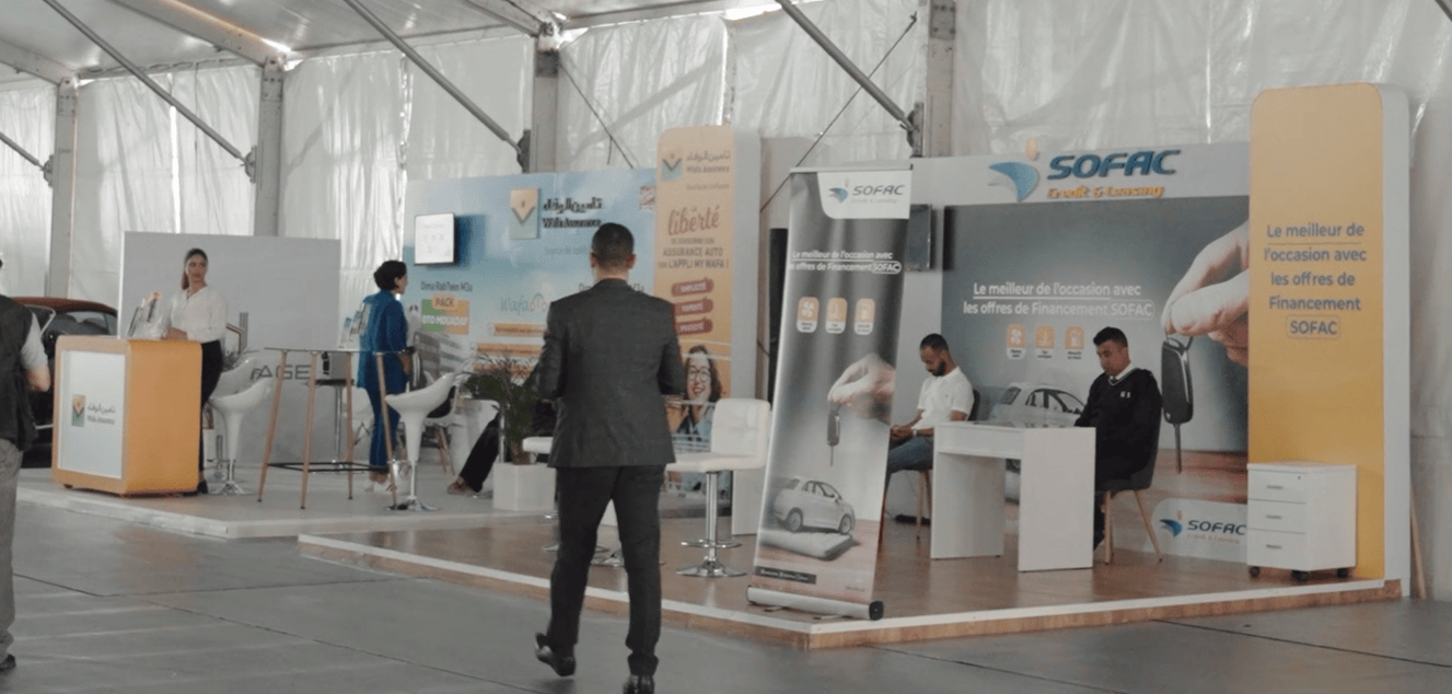 Conception et installation de stands adaptés aux salons professionnels, avec gestion complète des exposants.